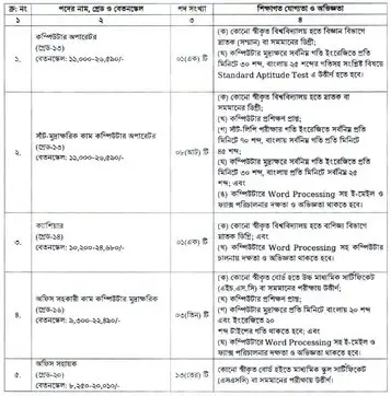 বয়স: ১ নভেম্বর ২০২৫ তারিখ ১৮-৩২ বছর। তবে ২ ও ৪ নং পদের ক্ষেত্রে বিভাগীয় প্রার্থীদের জন্য ৪০ বছর পর্যন্ত শিথিলযোগ্য। বয়স প্রমাণের ক্ষেত্রে কোনো প্রকার এফিডেভিট গ্রহণযোগ্য হবে না।