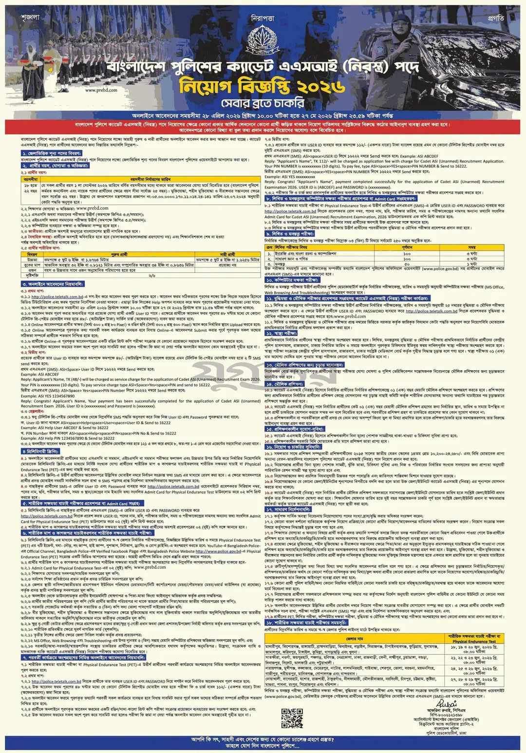 বাংলাদেশ পুলিশ বাহিনীতে ক্যারিয়ার গড়তে ইচ্ছুক তরুণ-তরুণীদের জন্য সুবর্ণ সুযোগ তৈরি হয়েছে। ক্যাডেট এএসআই (নিরস্ত্র) পদে জেলাভিত্তিক শূন্য পদে জনবল নিয়োগের জন্য এ বিজ্ঞপ্তি প্রকাশিত হয়েছে। ২৮ এপ্রিল থেকে এই পদের জন্য অনলাইনে আবেদন প্রক্রিয়া শুরু হবে। আবেদন করা যাবে আগামী ২৭ মে পর্যন্ত।