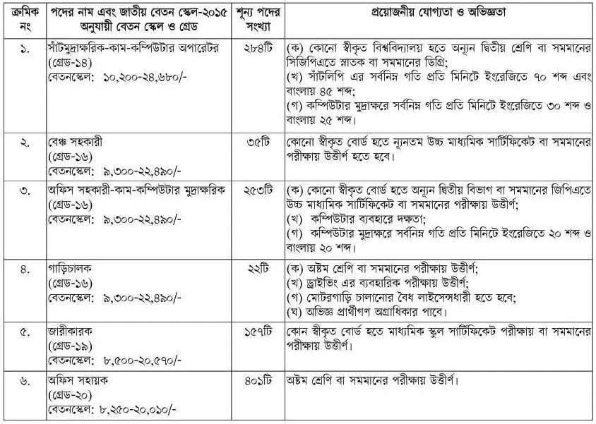 বাংলাদেশ জুডিশিয়াল সার্ভিস কমিশন সচিবালয়ের জেলা জজ এবং এর অধীনে আদালত/ট্রাইব্যুনালসমূহে ৬টি পদে এক হাজার ১৫২ জনকে নিয়োগ দেওয়া হবে। আগ্রহীরা আগামী ৯ ডিসেম্বর বিকেল ৫টা পর্যন্ত অনলাইনের মাধ্যমে আবেদন করতে পারবেন।